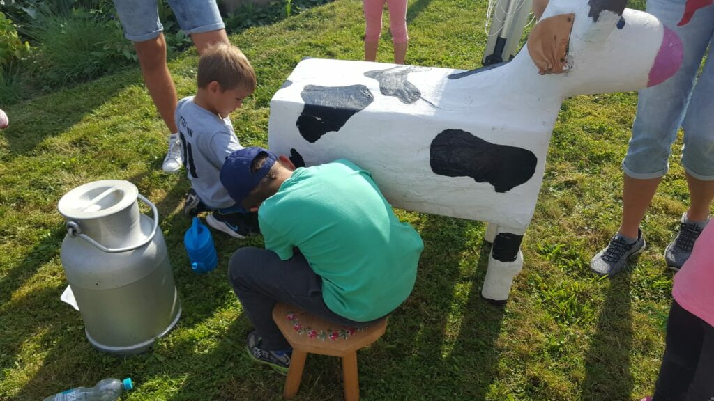Nach dieser spannenden Geschichte aus Israel „bereisten“ anschließend die Kinder insgesamt 11 Länder, in denen spannende Herausforderungen auf sie warteten. Los gings in der Schweiz. Hier konnten sich die Weltreisenden in der Fertigkeit des Kühe-Melkens üben. Weiter ging es über Frankreich zur Tour de France nach Italien zum Bau des Schiefen Turms von Pisa.