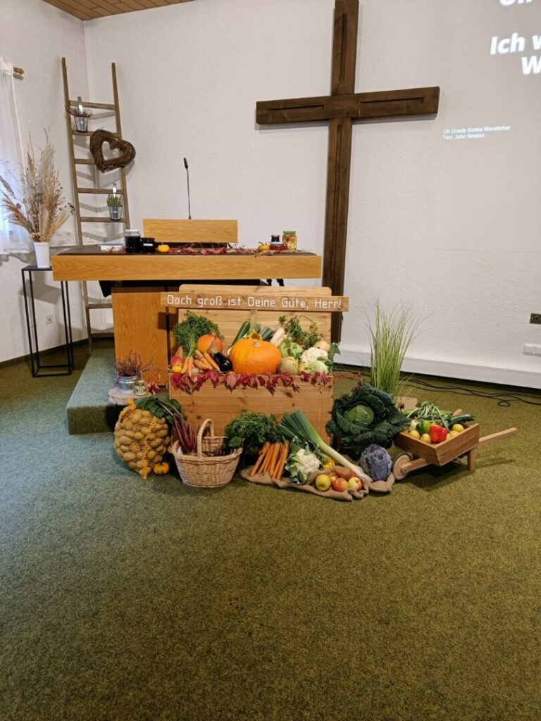 Am 02.10.2022 fand der diesjährige Ernte-Dank Gottesdienst statt. So wurden von der gesamten Gemeinde verschiedenste Lebensmittel zusammengetragen, mit denen das Gemeindehaus geschmückt wurde.